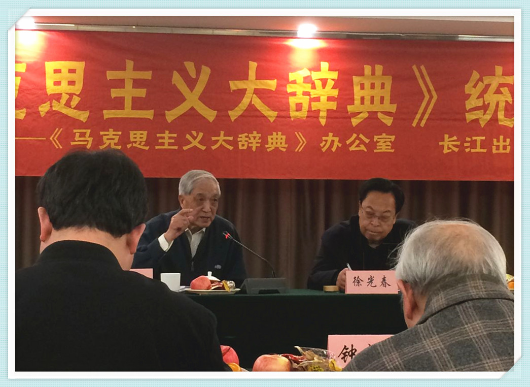 4月23日,《马克思主义大辞典》统稿工作会在北京湖北大厦召开,主编徐光春及副主编沙健孙、梁柱、周新城、卫兴华、田心铭、钟哲明、赵曜、梅荣政、任大奎出席会议,副主编靳辉明委托中国社科院博士生导师罗文东参会。武汉大学马克思主义学院院长佘双好教授主持会议。